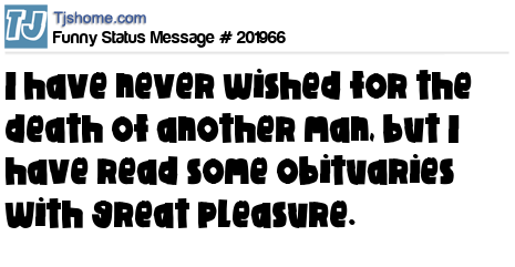 - # 55360 I've never wished a man dead, but I have read some obituaries with great pleasure. - Mark Twain