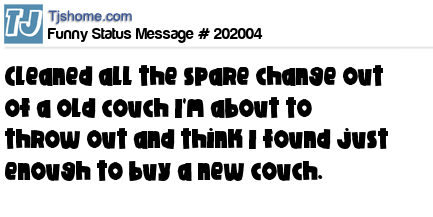 X is Cleaned all the spare change out of a old couch I'm about to throw out and think I found just enough to buy a new couch.