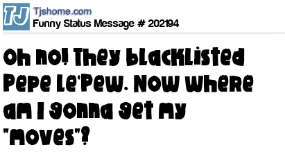 X says Oh no! They blacklisted Pepe Le'Pew. Now where am I gonna get my "moves"?