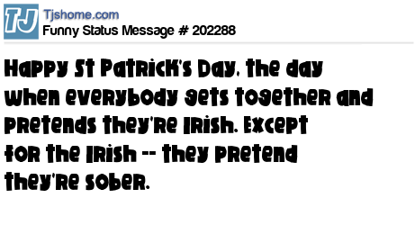 - # 126290 Happy St. Patrick's Day everyone! The day when everybody gets together and pretends they're Irish. Except the Irish... they pretend they're sober.