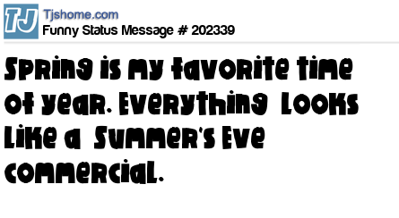 X says Spring is my favorite time of year. Everything looks like a Summer's Eve commercial.