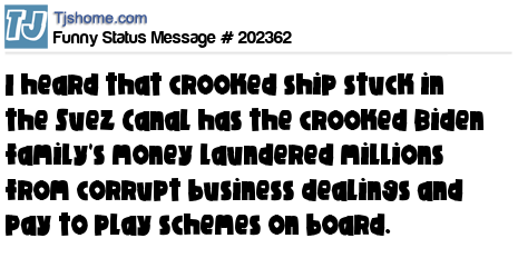 X is I heard that crooked ship stuck in the Suez Canal has the crooked Biden family's money laundered millions from corrupt business dealings and pay to play schemes on board.