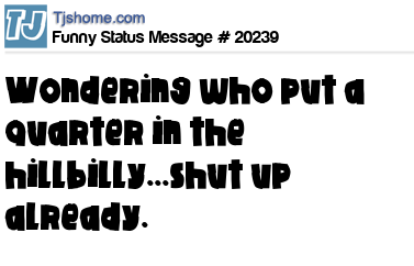 X is wondering who put a quarter in the hillbilly...shut up already.