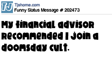 - # 199687 I got a call from a guy who said that I should stock up on water, batteries, canned goods, candles and a generator. I said, "Done, thank you. I'm ready for Hurricane Isaias." He said, "No, this is your financial advisor."