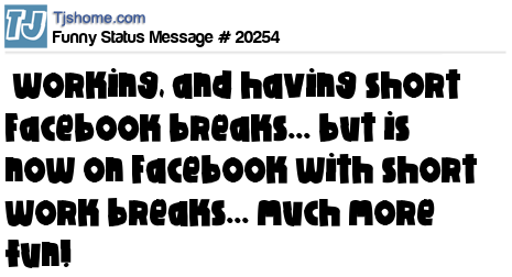 X working, and having short Facebook breaks... but is now on Facebook with short work breaks... much more fun!