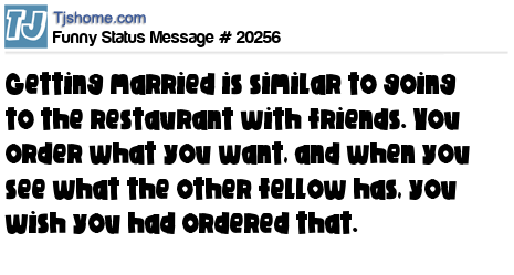 - # 208655 Getting married is like going to the restaurant. You order what you want, and when you see what the other person has, you wish you had ordered that...