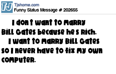 X says I don’t want to marry Bill Gates because he’s rich. I want to marry Bill Gates so I never have to fix my own computer.