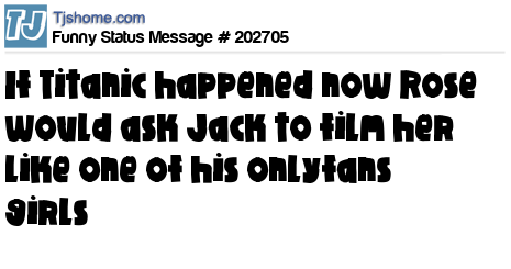 - # 99913 I wonder if Titanic would have been as romantic if Jack would have said, "Hey Rose how bout we let me get on the headboard for just a couple of minutes"....