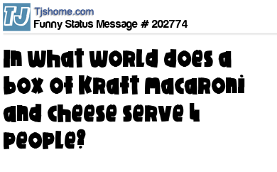 - # 203986 In what world does a box of macaroni and cheese serve 4 people?