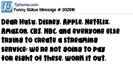 X says Dear Hulu, Disney, Apple, Netflix, Amazon, CBS, NBC, and everyone else trying to create a streaming service: we’re not going to pay for eight of these, work it out.