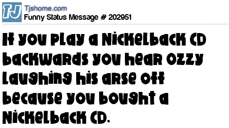 X says If you play a Nickelback CD backwards you hear Ozzy laughing his arse off because you bought a Nickelback CD.