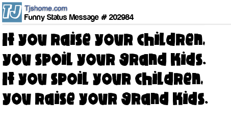 - # 186777 If you raise your children, you spoil your grandkids. If you spoil your children, you raise your grandkids.