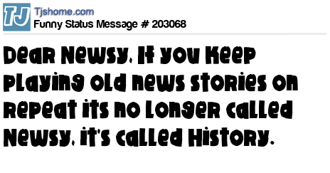 X is Dear Newsy, If you keep playing old news stories on repeat its no longer called Newsy, it's called History.