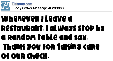X says Whenever I leave a restaurant, I always stop by a random table and say, “Thank you for taking care of our check.”