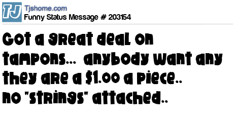 X says got a great deal on tampons... anybody want any they are a $1.00 a piece.. no "strings" attached..