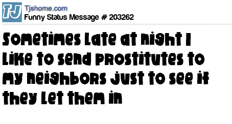 X is Sometimes late at night I like to send prostitutes to my neighbors just to see if they let them in