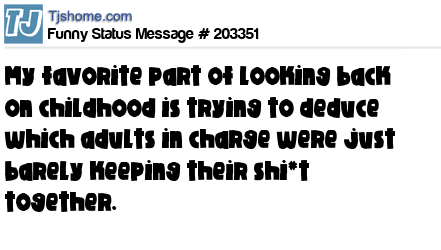 X says My favorite part of looking back on childhood is trying to deduce which adults in charge were just barely keeping their shi*t together.