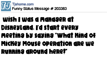 - # 193278 I wish I was a manager at Disneyland. I'd start every meeting by saying "What kind of a Mickey Mouse operation are we running around here?"