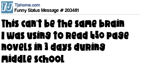 X says this can't be the same brain I was using to read 450 page novels in 3 days during middle school
