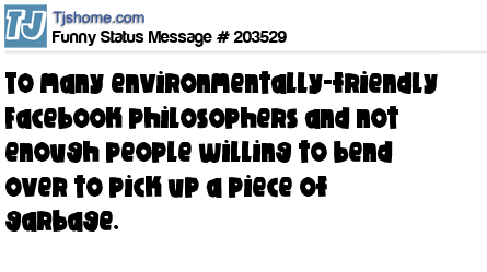 - # 191923 Too many of environmentally friendly philosophers in the world and not enough people willing to bend over to pick up a piece of garbage.