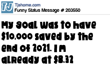 X says My goal was to have $10,000 saved by the end of 2021. I’m already at $8.32