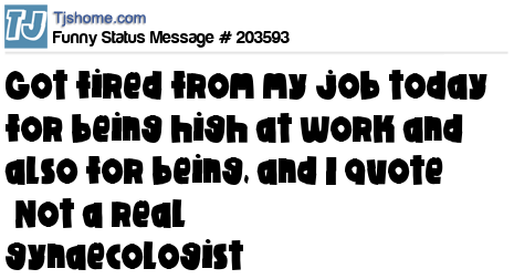 X says Got fired from my job today for being high at work and also for being, and I quote “Not a real gynaecologist”