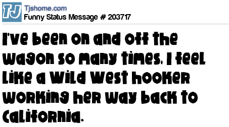 X says I've been on and off the wagon so many times, I feel like a Wild West hooker working her way back to California.