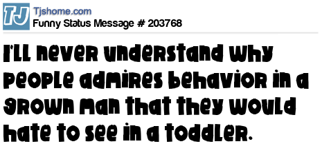 X is I'll never understand why people admires behavior in a grown man that they would hate to see in a toddler.