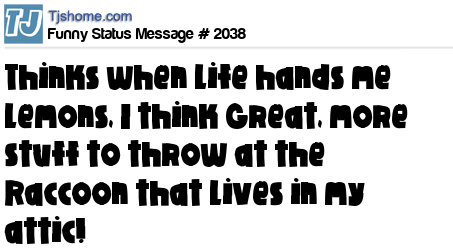 X thinks when life hands me lemons, I think Great, more stuff to throw at the Raccoon that lives in my attic!