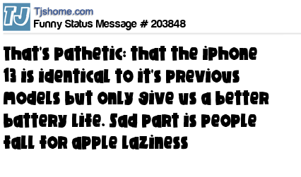 X is that's pathetic: that the iphone 13 is identical to it's previous models but only give us a better battery life. Sad part is people fall for apple laziness
