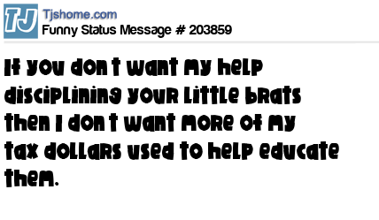 X says If you don’t want my help disciplining your little brats then I don’t want more of my tax dollars used to help educate them.