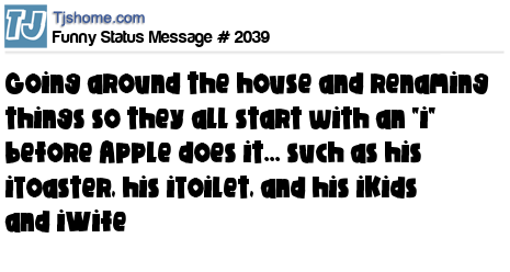 X is going around the house and renaming things so they all start with an "i" before Apple does it... such as his iToaster, his iToilet, and his iKids and iWife