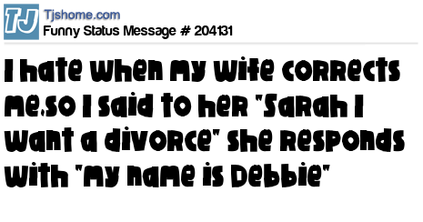 X says I hate when my wife corrects me,so I said to her "Sarah I want a divorce" she responds with "my name is Debbie"