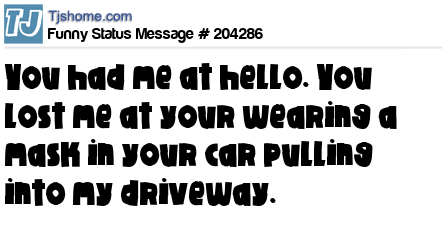 X says You had me at hello. You lost me at your wearing a mask in your car pulling into my driveway.