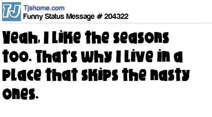 X says Yeah, I like the seasons too. That's why I live in a place that skips the nasty ones.