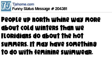 X says People up north whine way more about cold winters than we Floridians do about the hot summers. It may have something to do with feminine swimwear.