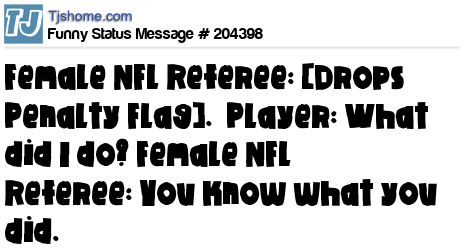 X says Female NFL Referee: [Drops Penalty Flag]. Player: What did I do? Female NFL Referee: You know what you did.