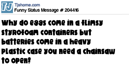 X says Why do eggs come in a flimsy styrofoam containers but batteries come in a heavy plastic case you need a chainsaw to open?