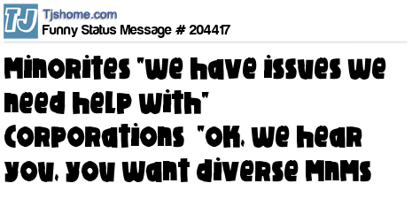 X says Minorites "we have issues we need help with" Corporations "ok, we hear you, you want diverse MnMs