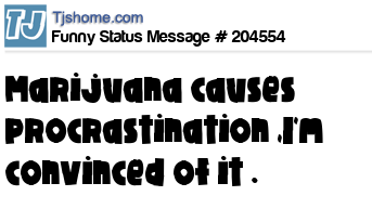 X says Marijuana causes procrastination ,I'm convinced of it .