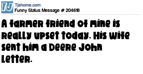 X says A farmer friend of mine is really upset today. His wife sent him a Deere John letter.