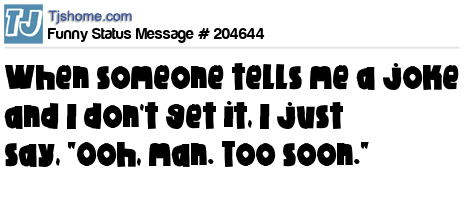 X says When someone tells me a joke and I don't get it, I just say, "Ooh, man. Too soon."