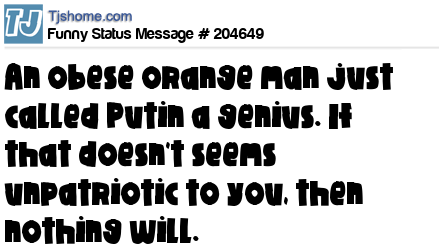X is An obese orange man just called Putin a genius. If that doesn't seems unpatriotic to you, then nothing will.
