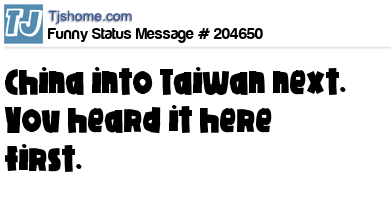 - # 206791 "I didn't say I was going to Taiwan. I said I was going to 'tie one on'." -Nancy Pelosi