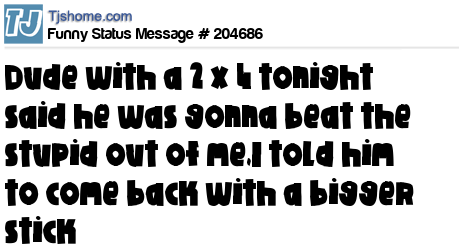 X says Dude with a 2 x 4 tonight said he was gonna beat the stupid out of me,I told him to come back with a bigger stick