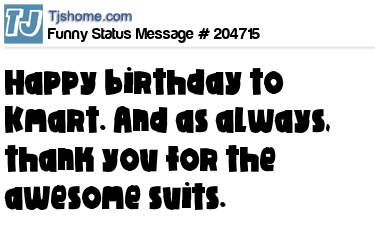 X says Happy birthday to Kmart. And as always, thank you for the awesome suits.