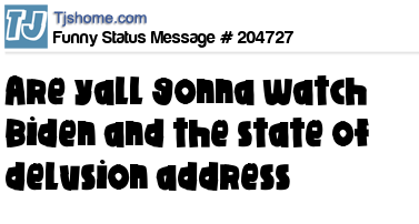 - # 123890 Wondering if I should watch Obama's State of the Confusion Address tonight.. More talk that never changes anything..