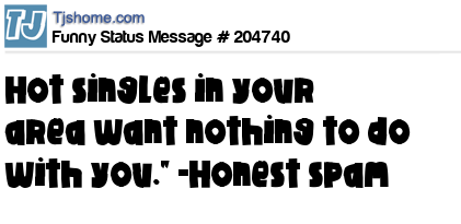 - # 198935 "Hot singles in your area want nothing to do with you." -Honest spam