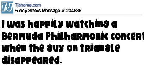 - # 207383 I just returned from a Christmas concert put on by the Bermuda Philharmonic Orchestra, Half way through, the guy on the triangle disappeared.