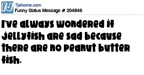 - # 170271 I bet jellyfish are sad that there are no peanut butter fish........ *and yes,, I was around alot of people smoking pot today so....